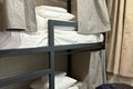 Ярус верхний, в номере 3 двухъярусные кровати с удобными матрасами и постельным бельём страйп сатин, полотенцем и шторками, индивидуальные шкафчики с кодовым и биометрическим (от отпечатка пальца) замком, средства гигиены выдаются у администратора (гель, шампунь, щетка), на окнах шторы блэк аут.
